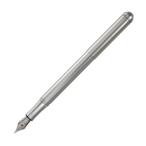 All-metal silver-coloured barrel with Kaweco logo in white on the cap end.