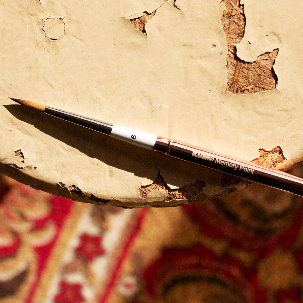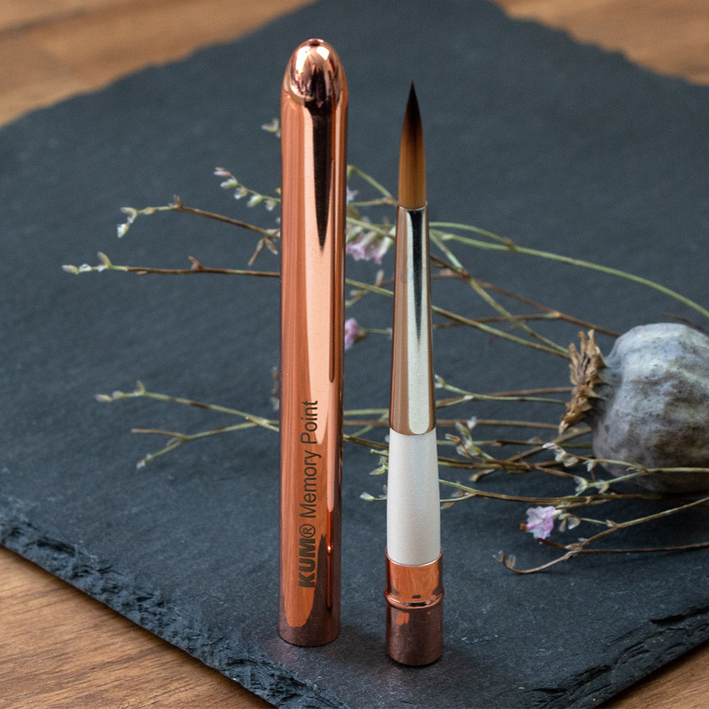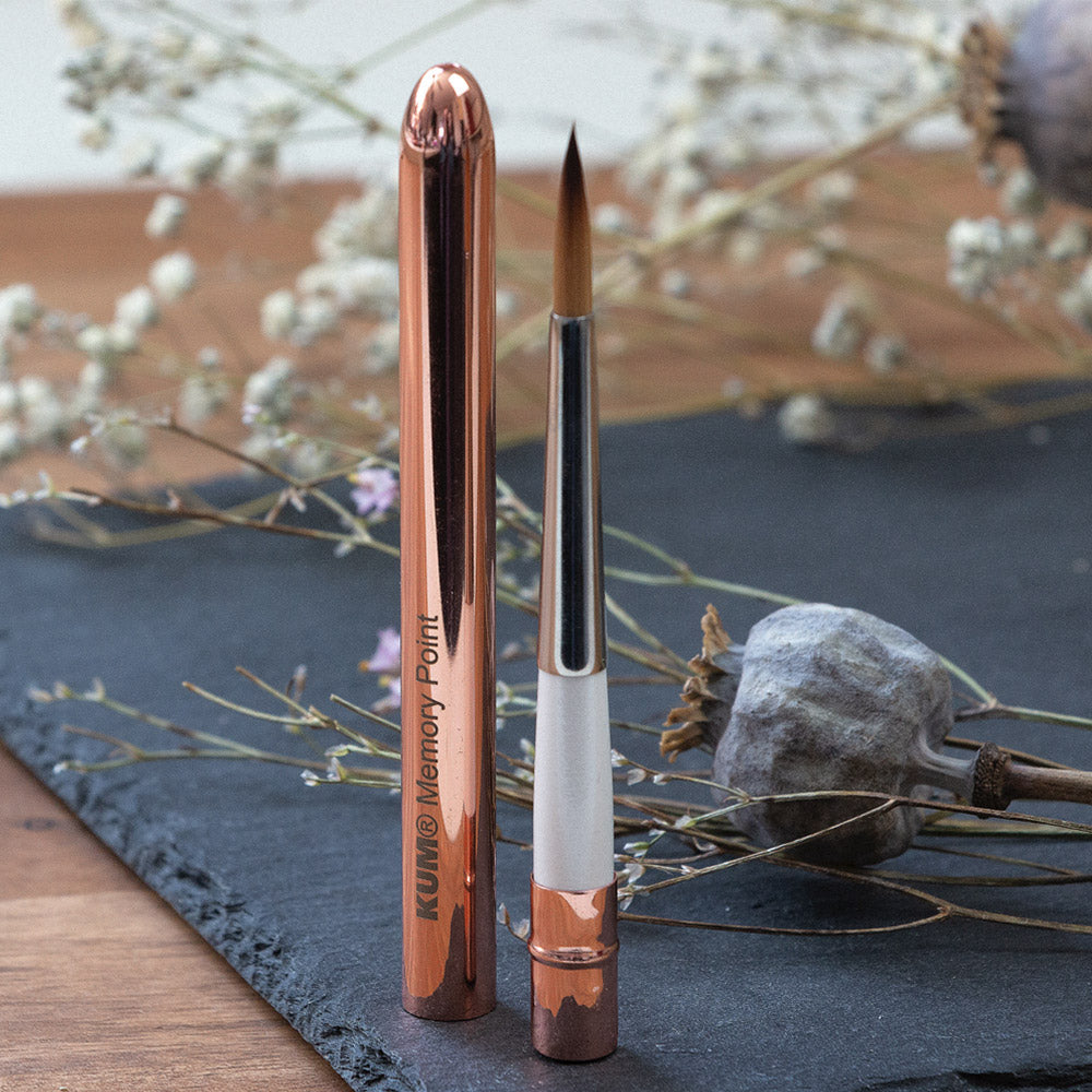 Handmade KUM Memory Point brushes use high-tech fibres developed especially for KUM. They offer longer-lasting tip retention than conventional brushes, providing good elasticity and clean, even paint dispersal.