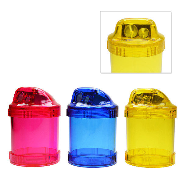 Ergonomic pencil sharpener in an assortment of colours with waste container and double-hole sharpener (for 8mm and 11mm pencils) precision-made of milled magnesium alloy. Suitable for all round, hexagonal and triangular shaped pencils. Screw-on top. Sharpener is removable.
