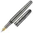 The Laban Antique Rose Gold Fountain Pen has a vintage look with its grey distressed effect lined barrel and cap. Spring loaded clip matches the barrel and cap for a sleek look. Supplied with a converter for use with bottled ink, and will also take international standard ink cartridges (no sample cartridge included). Stainless steel nib with iridium tip engraved with Laban logo.