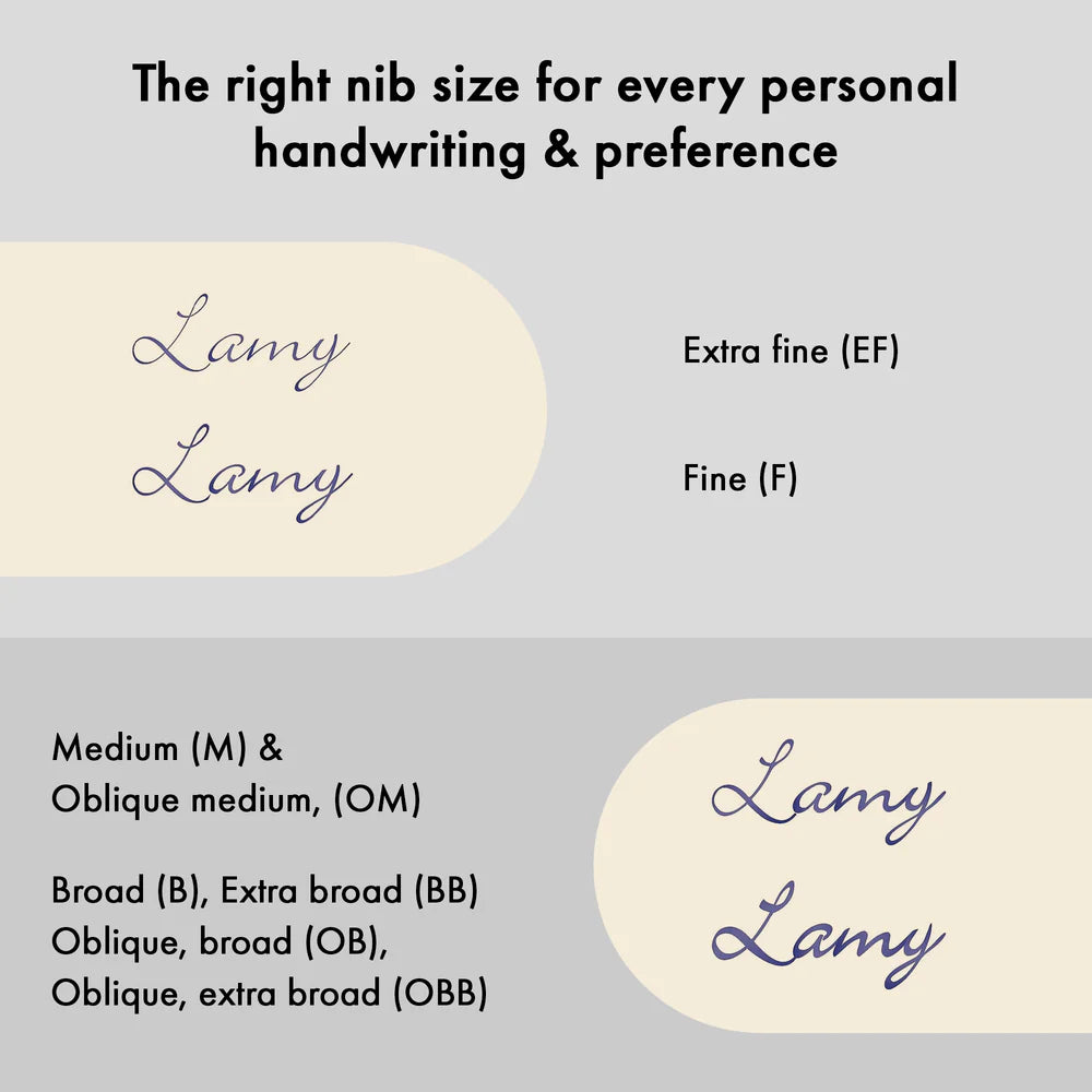 Available with a wide range of nibs - we normally keep M, F, EF and B in stock. Other nibs will be subject to approximately 14-day delivery.