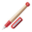 Made of maple wood, cap and cube of red plastic. Non-slip, rubberised plastic grip with triangular profile. Pack contains a set of write-on name stickers in various colours. Tough polished steel beginners 'A' nib in medium point.