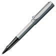 AL-star rollerball pen with matt grey anodised aluminium barrel and cap, with translucent grey triangular grip area. Strong metal wire pocket clip. Liquid ink roller refill.
