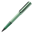 LAMY AL-star rollerball pen in Sage. Made from lightweight, durable aluminium, this special edition has a satin anodised barrel in a dusky green. Characteristic LAMY front section in transparent plastic. Strong sprung black steel clip.