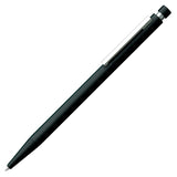 The Lamy cp1 is a 0.7mm mechanical pencil with a push-button lead-advance. Matt black lacquer over metal with a brushed stainless-steel spring-mounted pocket clip. Replaceable eraser with clearing pin under the cap.