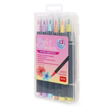 Assorted set of 12 brush markers in pastel colours with flexible nylon fibre brush tips which help keep the mess in check!