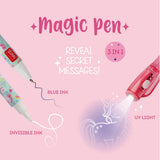 Invisible Magic Ink pen from Legami. How does it work? Well, thanks to its dual tip, you can write with normal blue ink. Nothing magic about that. But the other end is invisible ink, and it's only visible under UV light. Fortunately, the cap of the Invisible Magic Ink pen is equipped with such a thing, so you - and only you - can see what you've written.