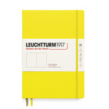 LEUCHTTURM1917 Hardcover B5 Notebook. Rigid cover in lemon yellow with rounded corners, an expandable pocket in the cover, elastic fastener, bookmark and a thread-stitched inner book.