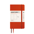 LEUCHTTURM1917 Pocket Notebook. Flexible cover with rounded corners, an expandable pocket in the back cover, elastic fastener, 2 ribbon page markers and a thread-stitched inner book.