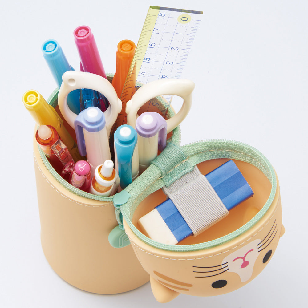 What's more... (once you've unzipped the lid) pushing it down on a flat surface will propel the contents further up and out of the 'neck' of the pencil case, making it super-easy to select what you need.