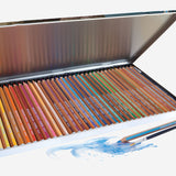 Assorted set of 36 pencils: 001 White; 002 Cream; 005 Lemon Cadmium; 008 Orange Yellow; 013 Light Orange; 015 Dark Orange; 018 Scarlet Lake; 021 Pale Geranium Lake; 028 Rose Madder; 029 Pink Madder; 031 Medium Flesh; 032 Light Flesh; 033 Wine Red; 034 Magenta; 035 Reddish Violet; 036 Dark Violet; 044 Light Cobalt Blue; 047 Light Blue; 049 Oriental Blue; 050 Paris Blue; 053 Peacock Blue; 061 Viridian; 065 Jupiter Green; 067 Sap Green; 068 Moss Green; 071 Light Green; 072 Grey Green; 075 Dark Sepia; 076 Van Dyck Brown; 082 Brown Ochre; 084 Ochre; 085 Light Ochre; 092 Purple; 096 Cold Silver Grey; 097 Medium Grey; 099 Black.