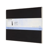 Moleskine Art Plus Extra Large Watercolour Block with rigid black cover. Contains 20 detachable sheets of plain, 300gsm ivory paper made of 35% cotton fibre cold-pressed on both sides. Features an expandable inner pocket ideal for loose sketches and notes, and also contains the history of Moleskine.