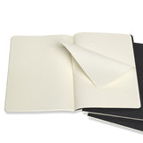 Moleskine Cahier Extra Large Journal set of 3 with black cardboard covers and robust rounded corners. Inner flap has space for keeping loose notes safe. Sewn pages, with visible stitching on the spine.