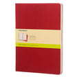 Moleskine Cahier Extra Large Journal set of 3 with red cardboard covers and robust rounded corners. Inner flap has space for keeping loose notes safe. Sewn pages, with visible stitching on the spine.