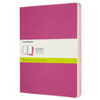 Moleskine Cahier Extra Large Journal set of 3 with pink cardboard covers and robust rounded corners. Inner flap has space for keeping loose notes safe. Sewn pages, with visible stitching on the spine.