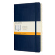 Moleskine Classic Collection Large Softcover Notebook just got larger! It has the usual flexible dark blue cover and robust rounded corners, plus the expandable inner pocket that contains the history of Moleskine, an elastic closure and two fabric page markers.