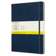 Moleskine Classic Collection Extra Large Notebook with sturdy sapphire blue hardback cover and robust rounded corners. Expandable inner pocket that contains the history of Moleskine, plus blue elastic closure and fabric page marker.