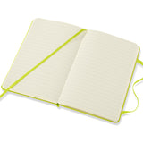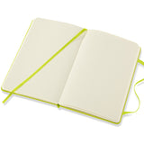Moleskine Pocket Notebook with sturdy green hardback cover and robust rounded corners. Expandable inner pocket that contains the history of Moleskine, plus elastic closure and fabric page marker.