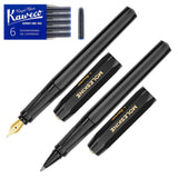 They're made from ABS plastic and the fountain pen comes equipped with a gold-plated steel medium nib. It's got that distinct Kaweco style cap design with the Kaweco logo embossed to the top of the lid.