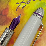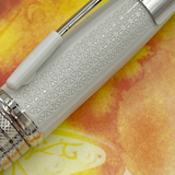 Made from precious resin, the black barrel is patterned to represent a WAH pedal and features a platinum-plated barrel ring reminiscent of a 1960s guitar cable which is engraved with the date of a famous concert. The off-white cap and its engraved pattern is inspired by one of Hendrix's guitar straps, and the platinum-plated pocket clip is angled like a vibrato bar.