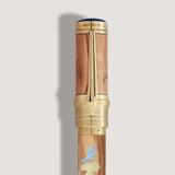 Part of Montblanc's Masters of Art collection, this pen pays homage to celebrated impressionist painter Pierre-Auguste Renoir. Made from olive wood, to celebrate the olive trees in Renoir's garden, the wooden barrel is daubed in paint, in the artist's style. The clip is gold-coated, and shaped like two paintbrushes, one large and one small, as Renoir used to paint bold areas and fine details.