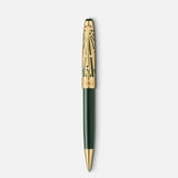 This Doué Classique features a gold-plated cap design reminiscent of the Art Déco period, inspired by an unreleased design found in the Montblanc archives. The cap also features the original Meisterstück logo, and its cap ring is engraved with the years 1924 and 2024. The pocket clip is an homage to early clip shapes found on some of the first Meisterstücks.