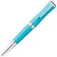 Highlighting one of Maria's favourite colours - Turquoise - this precious resin ballpoint pen from Montblanc features a slender body modelled to represent Maria Callas' silhouette. The pen features a turquoise body with platinum trim and pocket clip. The pocket clip is decorated with a turquoise stone whose colour is similar to the serene turquoise blue Aegean Sea, a reference to the beautiful waters of Maria's Greek homeland. A pattern of laurel leaves surrounds the platinum-coated cone which pays tribute to one of Maria's most recognisable bel canto roles: Bellini's 'Norma'.