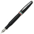 Monteverde Aldo Domani Italia fountain pen. A homage to all things Italian, this traditionally profiled fountain pen features a matte black body with polished chrome trimmings. The Italian flag can be found on the cap band.