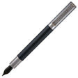 Fitted with a black stainless steel nib in a range of sizes. Supplied in a gift box with a converter and single ink cartridge. Matching ballpoint pen available.