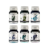 Set of 6 10ml ink bottles includes: Green Squirrel, Green Crane, Blue Sloth, Blue Koi, Petrol Axolotl, Blue Chameleon.