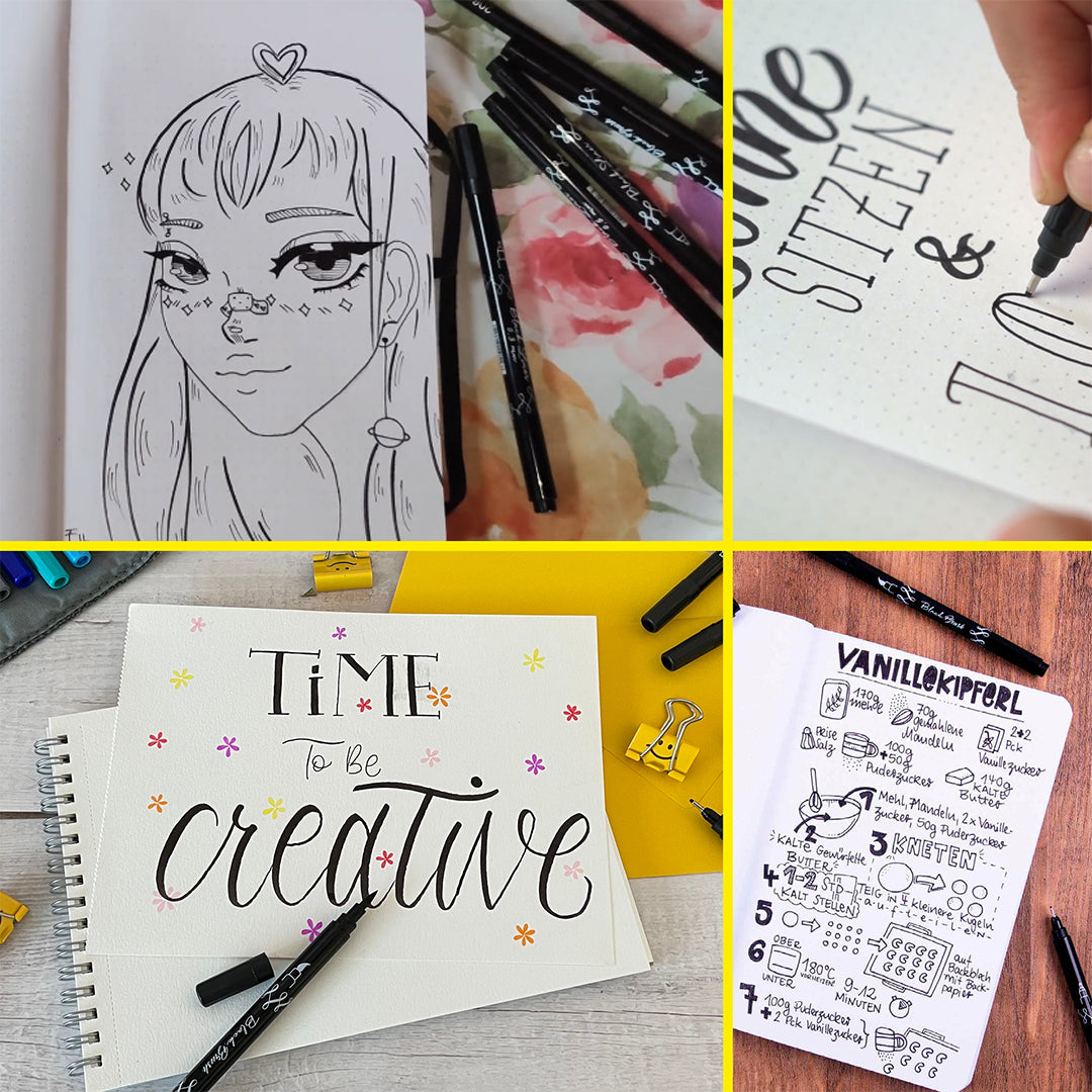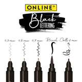 Designed for the beginner, this handy little lettering set comes with 5 calligraphy pens in different tips, types and sizes with black ink: