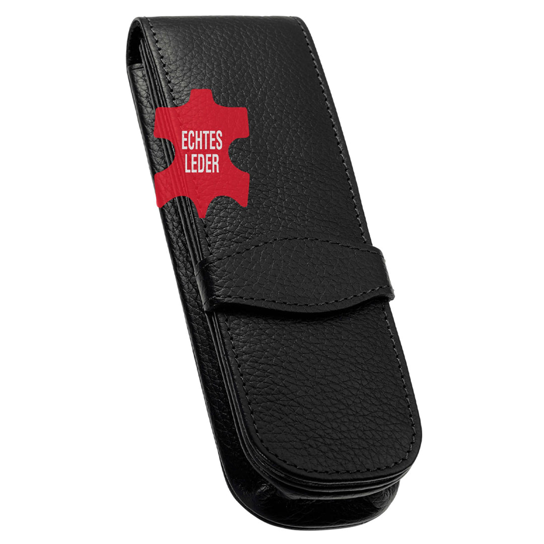 Simple leather pen case from ONLINE with room for 3 pens with a folding leather flap.