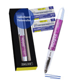 Boxed with two packs of blue erasable ink cartridges and an explanatory leaflet.