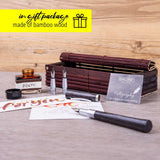 This lovely gift set includes one fountain pen with a steel 1.4mm stub nib, a 0.8mm stub nib, 1.8mm stub nib, ink converter and a 10ml bottle of brown ink.