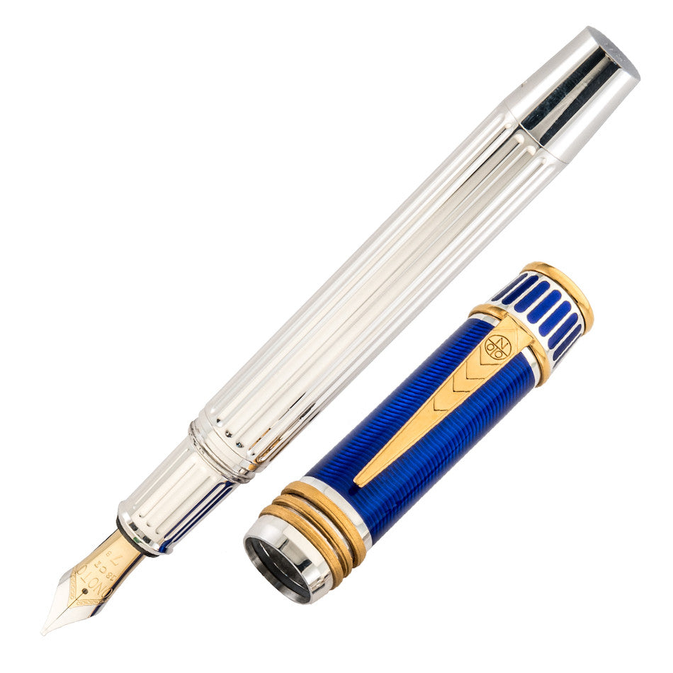 The Nelson pen is limited to 100 pieces and incorporates silver retrieved from HMS Victory. It's constucted from solid sterling silver, with the barrel crafted in the shape of Nelson's Column. The cap is a work of art in its own right, being intricately enamelled in a rich cobalt blue with an engine-turned wave pattern beneath.