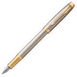 The Parker IM has simple and understated styling, and simplicity never goes out of fashion. Smart, polished and professional the premium edition of this fountain pen is an ideal partner. Sleek tapered shape. Sandblasted matte aluminium body featuring a silvery sheen and complemented by a gold finish trim. Steel nib.