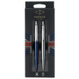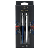 This set of two features a ballpoint in royal blue with blue ink, and a gel pen in stainless steel with black ink. Both feature the signature arrow-shaped pocket clip.