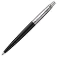 Sturdy plastic barrel, iconic arrow-shaped pocket clip and simple, no-nonsense push-button retract mechanism. Fitted with a standard Parker refill in medium blue.