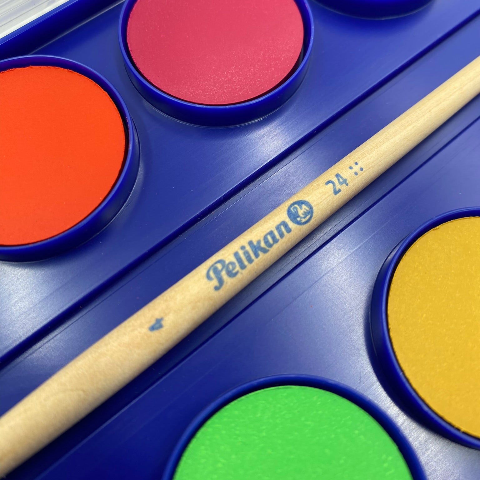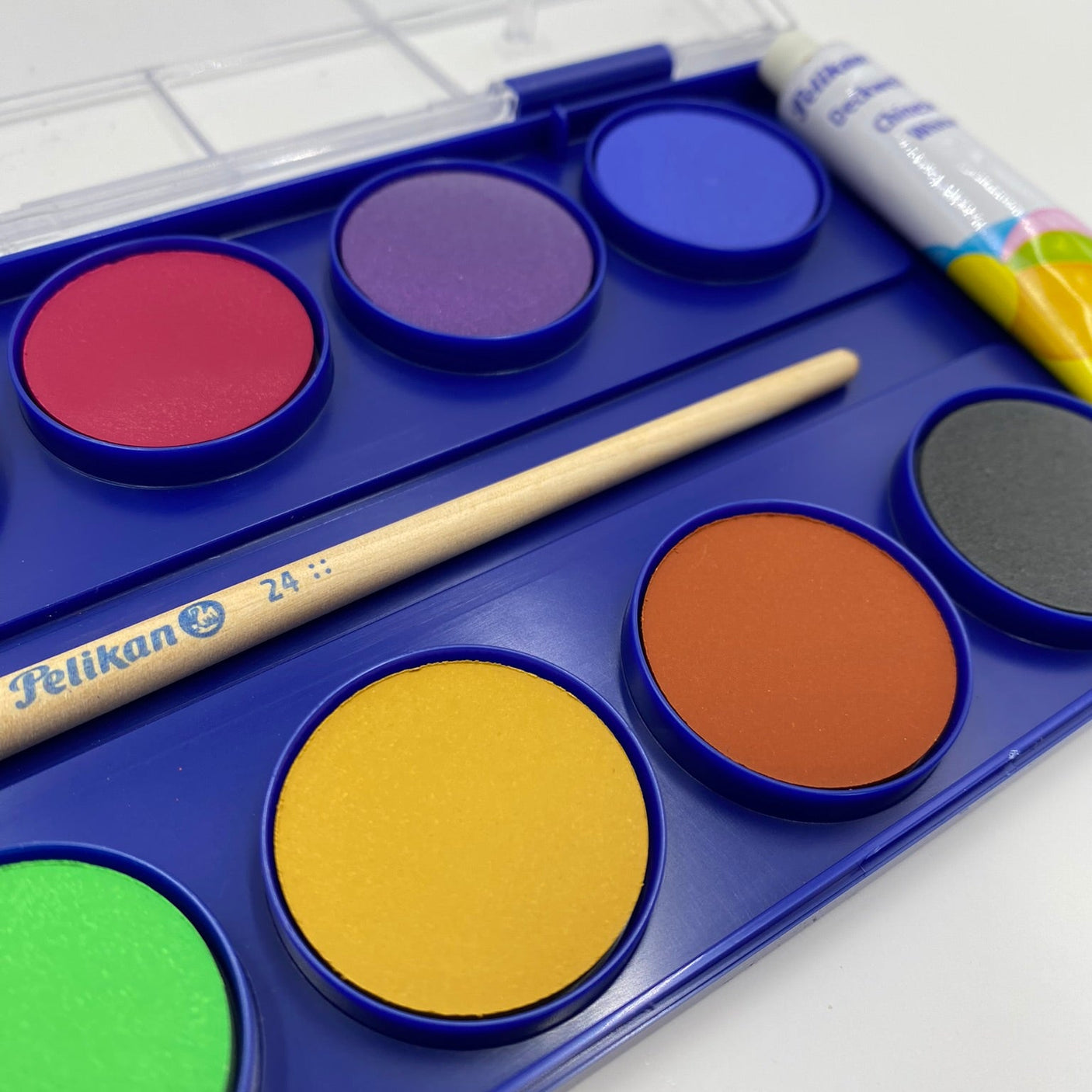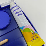 Also contains a 7.5ml tube of Chinese White liquid paint and a wooden-handled paintbrush. The lid doubles as a mixing palette.