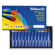 Set of 12 oil pastels in assorted colours: white, yellow, orange, red, pink, blue, violet, green, light green, ochre, brown and black.