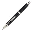 Pilot's famous retractable fountain pen in a contemporary style. Black with rhodium-plated trim and rhodium-plated 18k gold nib. Although known as the Carbonesque in Europe due to the superficial similarity of the finish with carbon fibre, this finish is actually known as the Kasuri in Japan. Kasuri is a textile dyed with a resist technique to create the simple patterns reflected in this pen.