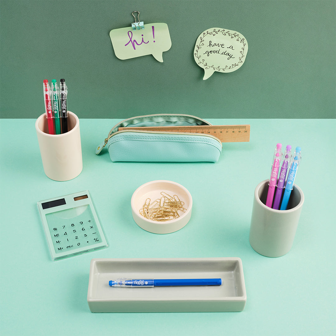 The Pilot FriXion Sticks use the same brilliant thermosensitive ink as the rest of the range. It erases cleanly and completely simply via the heat generated by the friction of the eraser on the top of the pen.
