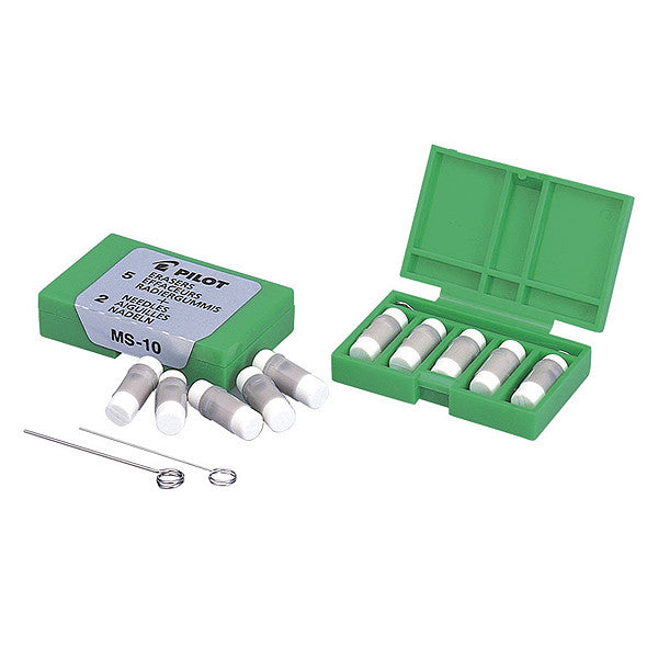 Pack of 5 eraser refills and 2 clearing pins (one extra-fine for 0.3mm pencils and one fine for 0.5mm and above) for use in most Pilot Mechanical Pencils including Super Grip, RexGrip, H-22x, Color ENO, Dr Grip, etc.