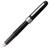 Platinum Plaisir Fountain Pen with stunning anodised aluminium body finished in Platinum's corporate colour - black. The barrel finish has been achieved by applying blast processing while the surface reflection has been softened to produce a mist-like effect, from which the name 'Black Mist' comes. Chromed metal pocket clip and engraved cap ring. 15g weight, 142mm long x 15mm max diameter.