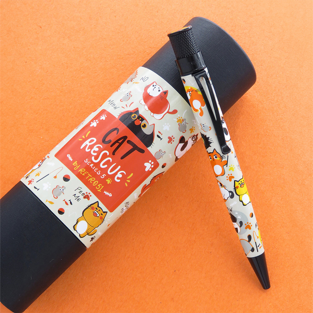This Tornado ballpoint features the image of a cute little cats. First the barrel has been acid-etched, followed by a copper plated finish, and finally it's printed. With every purchase of this Tornado, Retro 1951 are making a donation to Take Me Home Pet Rescue.