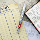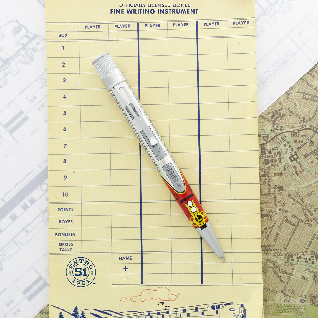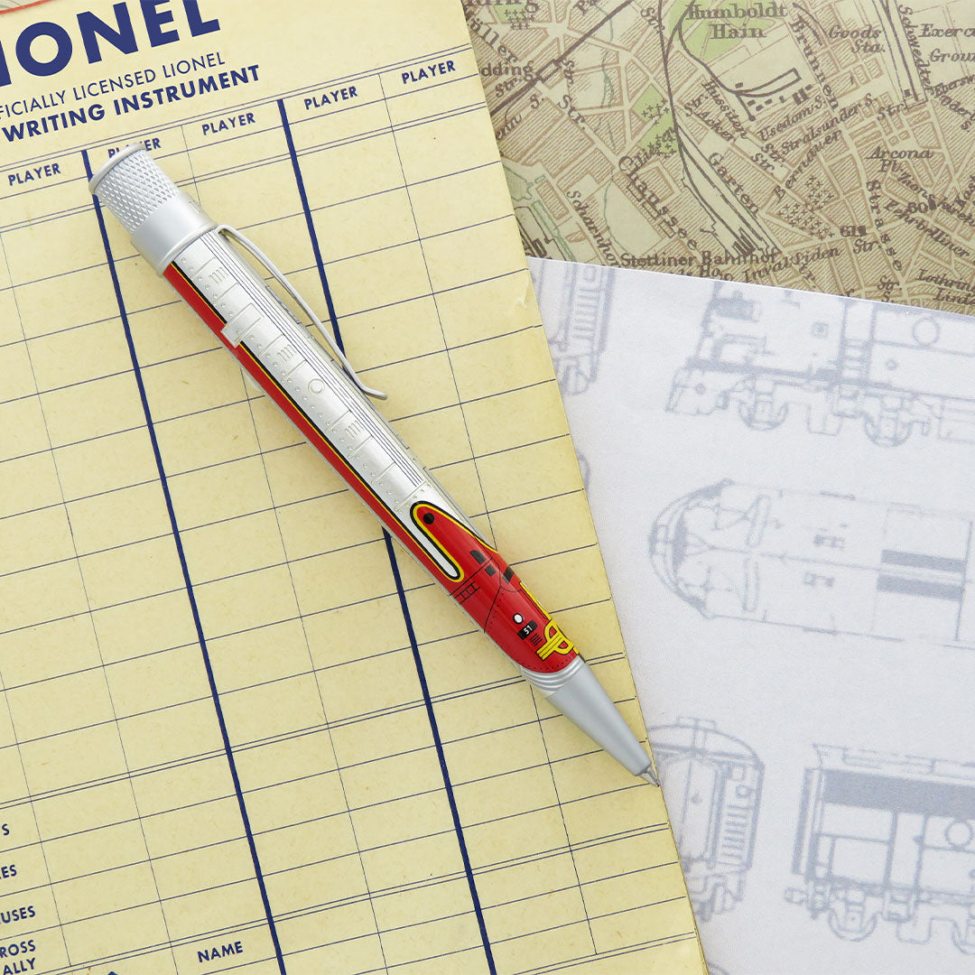 So... Retro 51, in collaboration with Lionel Trains, are launching a new series of pens celebrating model railways. This - the Super Chief - features an iconic red, yellow and silver paint job over an acid-etched barrel complete with rivets and panelling.