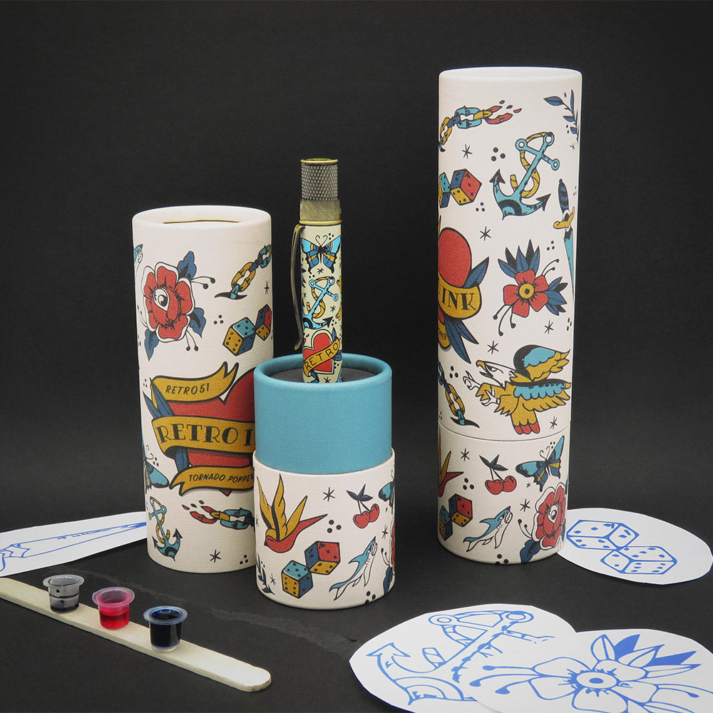 The Retro Ink edition is a celebration of the Traditional American style of tattoo art, the classic style well all know, with hearts and anchors, names or 'Mum'. Limited edition of only 60 pens.