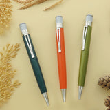 The Seasonal Touch rollerballs celebrate the autumn with a muted colour scheme. Fittingly, they'll only be available for the season. Textured lacquer barrel with brushed chrome trim and knurled twist-action button. Supplied in a themed tube that also doubles as a pen stand.