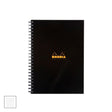 Rhodia wirebound hardback A4 business book in black. 160 pages of 90gsm Clairefontaine brushed vellum paper in bright white with superior opacity and strength. This is superb-quality writing paper that stands up to all types of pens without bleed or feather. PEFC-certified.
