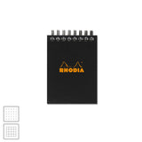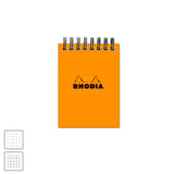 Rhodia Wirebound A7 reporter notepad with a choice of orange or black covers.
